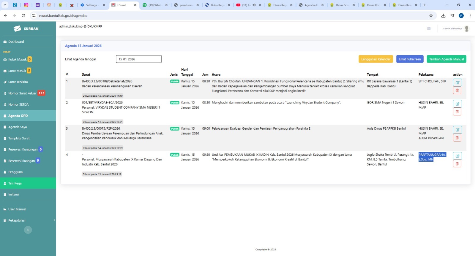 Kami sampaikan salah satu tampilan agenda pada apalikasi SURBAN, sebagai berikut :