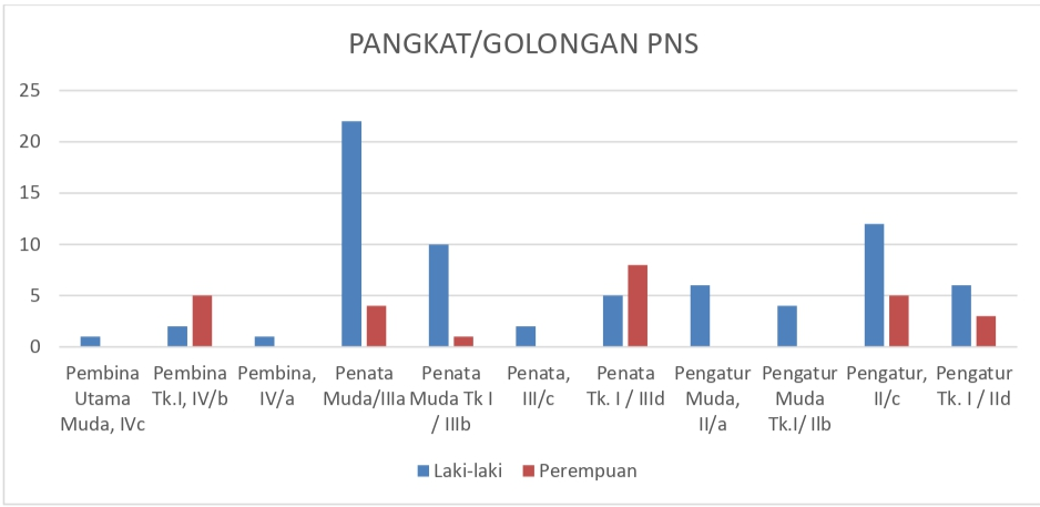 PNS Dinas Koperasi, Usaha Kecil dan Menengah, Perindustrian dan Perdagangan Kabupaten Bantul menduduki Pangkat/Golongan Pembina Utama Muda, IVc sejumlah 1 orang, Pembina Tk.I, IV/b sejumlah 7 orang, Pembina, IV/a sejumlah 1 orang, Penata Muda/IIIa sejumlah 26 orang, Penata Muda Tk I / IIIb sejumlah 11 orang, Penata, III/c sejumlah 2 orang, Penata Tk. I / IIId sejumlah 13 orang, Pengatur Muda, II/a sejumlah 6 orang, Pengatur Muda Tk.I/ Ilb sejumlah 4 orang, Pengatur, II/c sejumlah 17 orang, dan Pengatur Tk. I / IId sejumlah 9 orang.